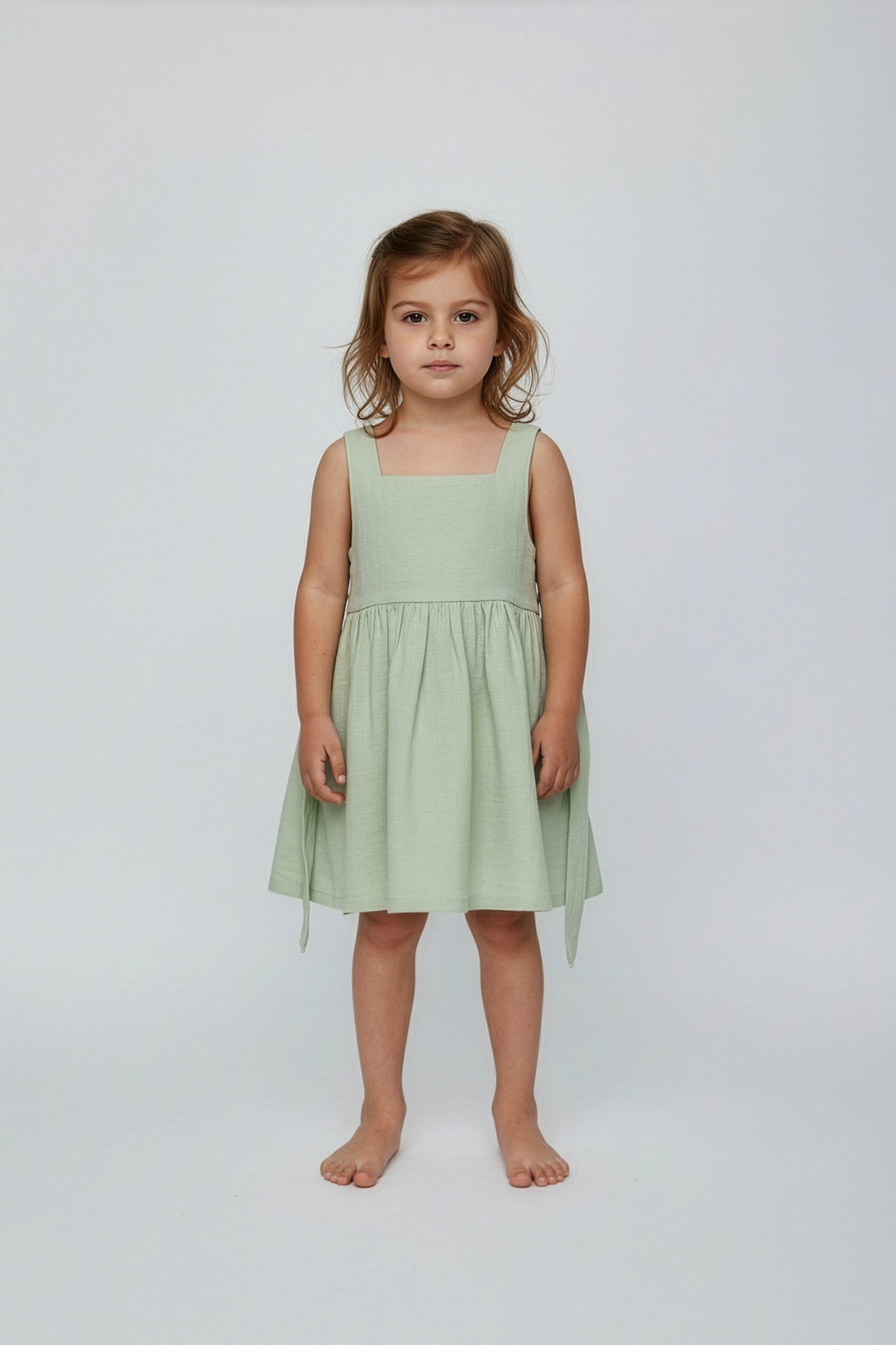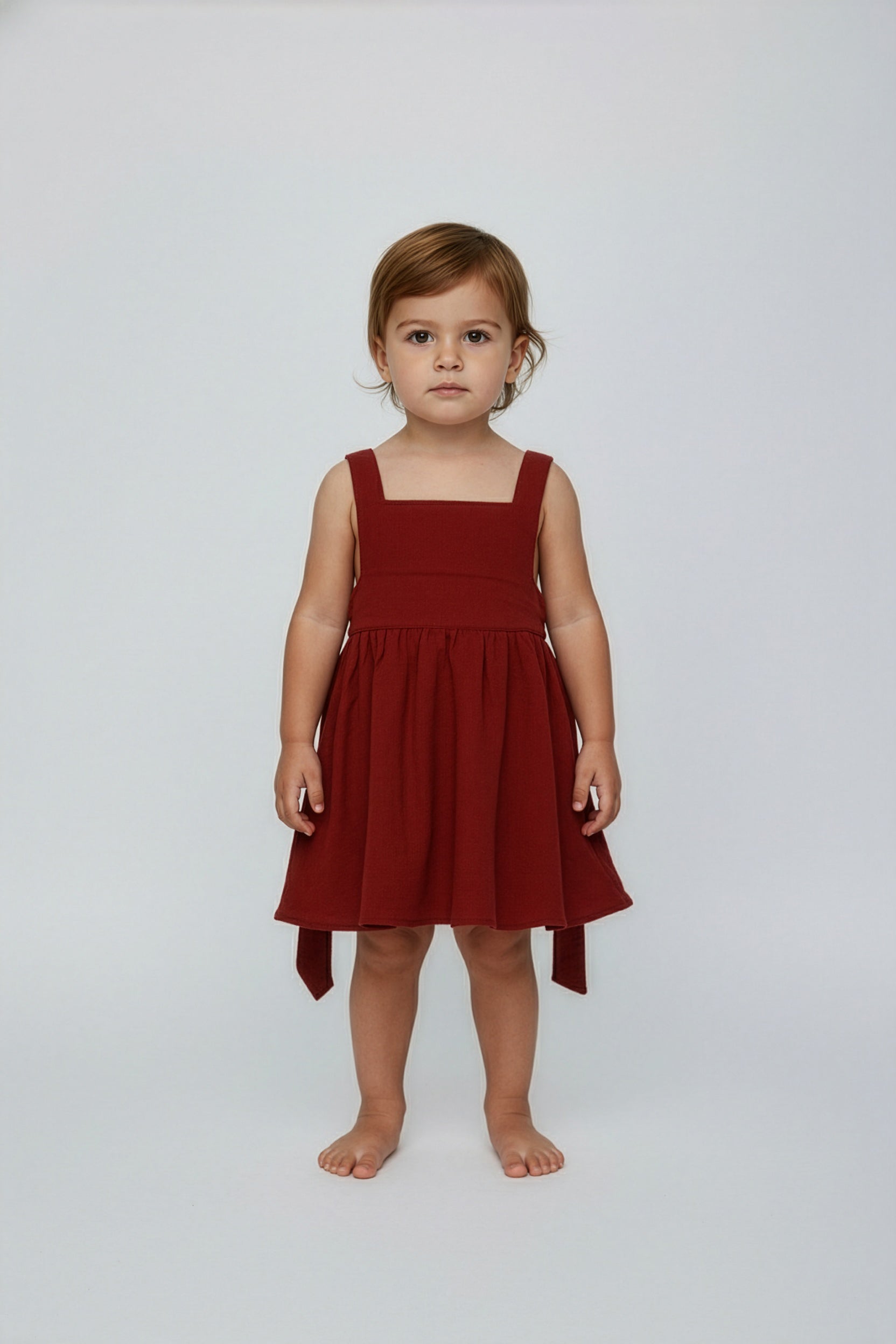 Scatena il tuo stile audace con l'abito Charlotte smanicato in mussola. Realizzato in 100% cotone biologico, questo abito trasuda sicurezza con i suoi giromanica quadrati, il design monocromatico e il fiocco in tono. Esalta il tuo guardaroba e prendi posizione con questa scelta di moda sostenibile!