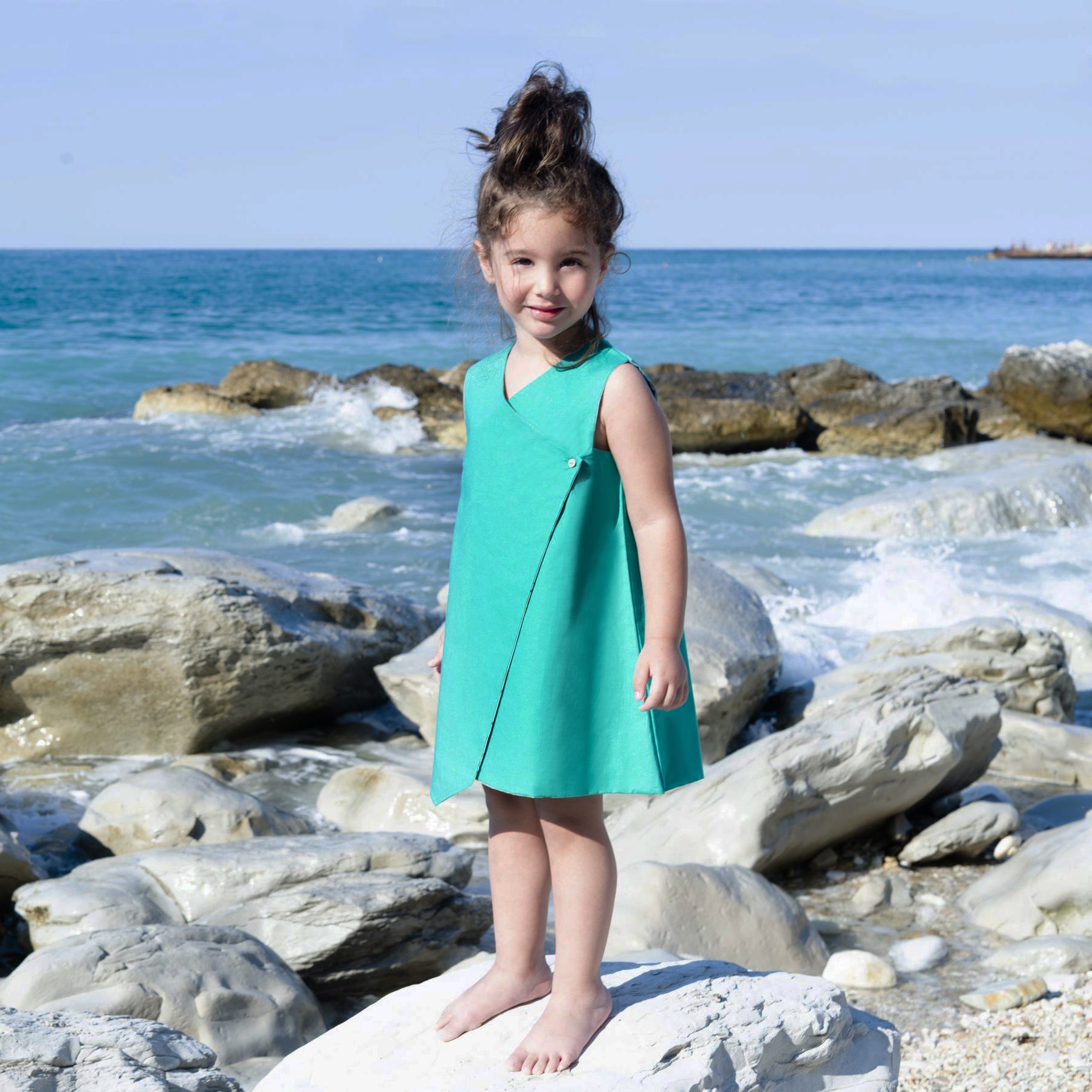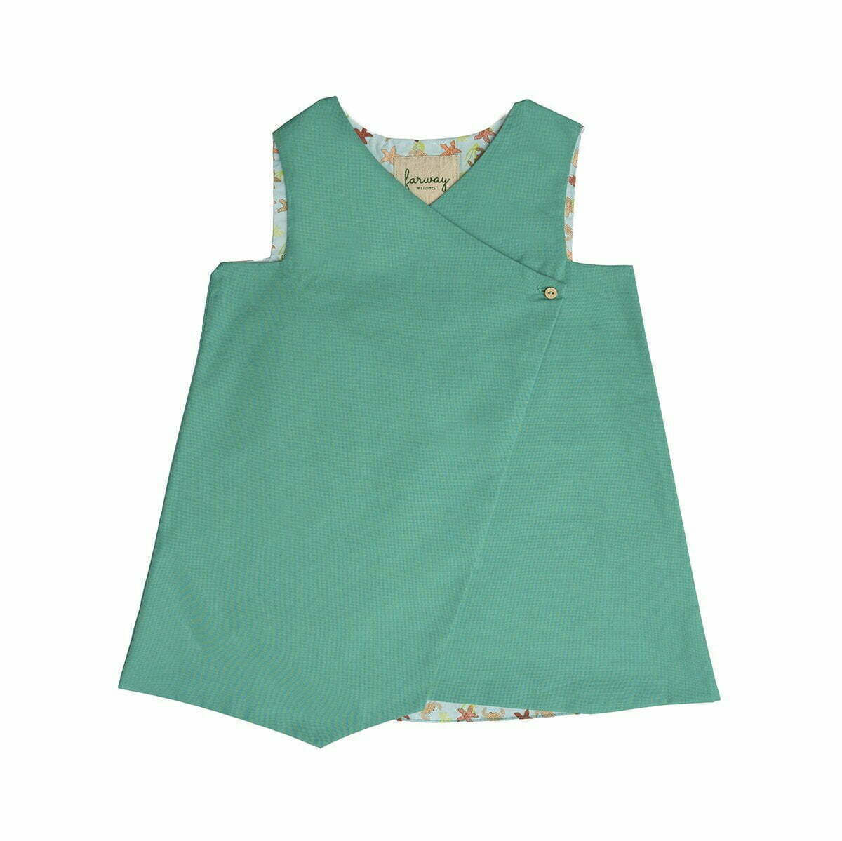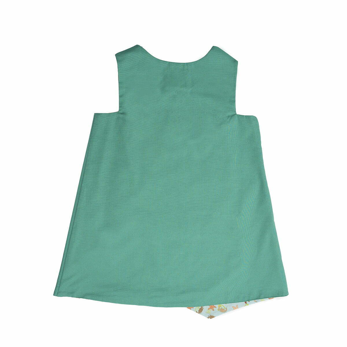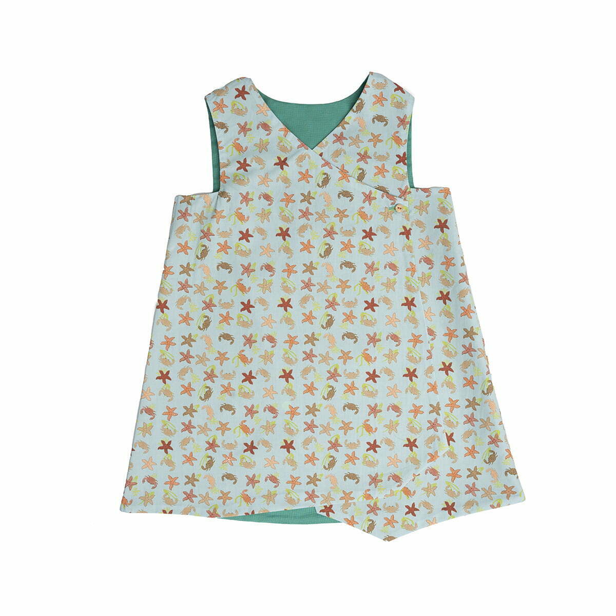 Esci dalla tua zona di comfort e abbraccia l'avventura con questo abito double-face, realizzato in 100% cotone biologico. Un lato è in tinta unita mentre l'altro vanta un motivo giocoso di motivi marini o aquiloni. Versatile e perfetto per ogni occasione, si chiude sul davanti con un bottone in cocco naturale. Fai un passo audace e aggiungi questo vestito al tuo guardaroba oggi stesso!