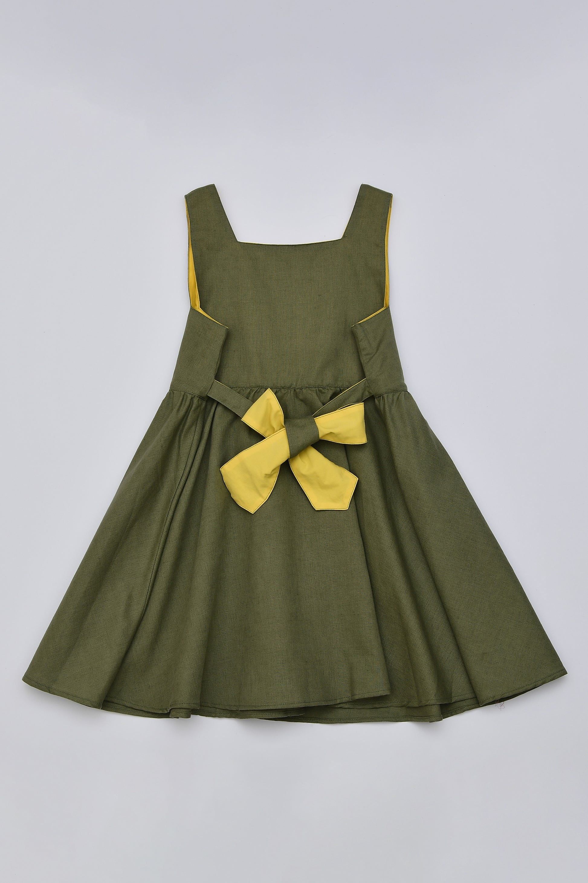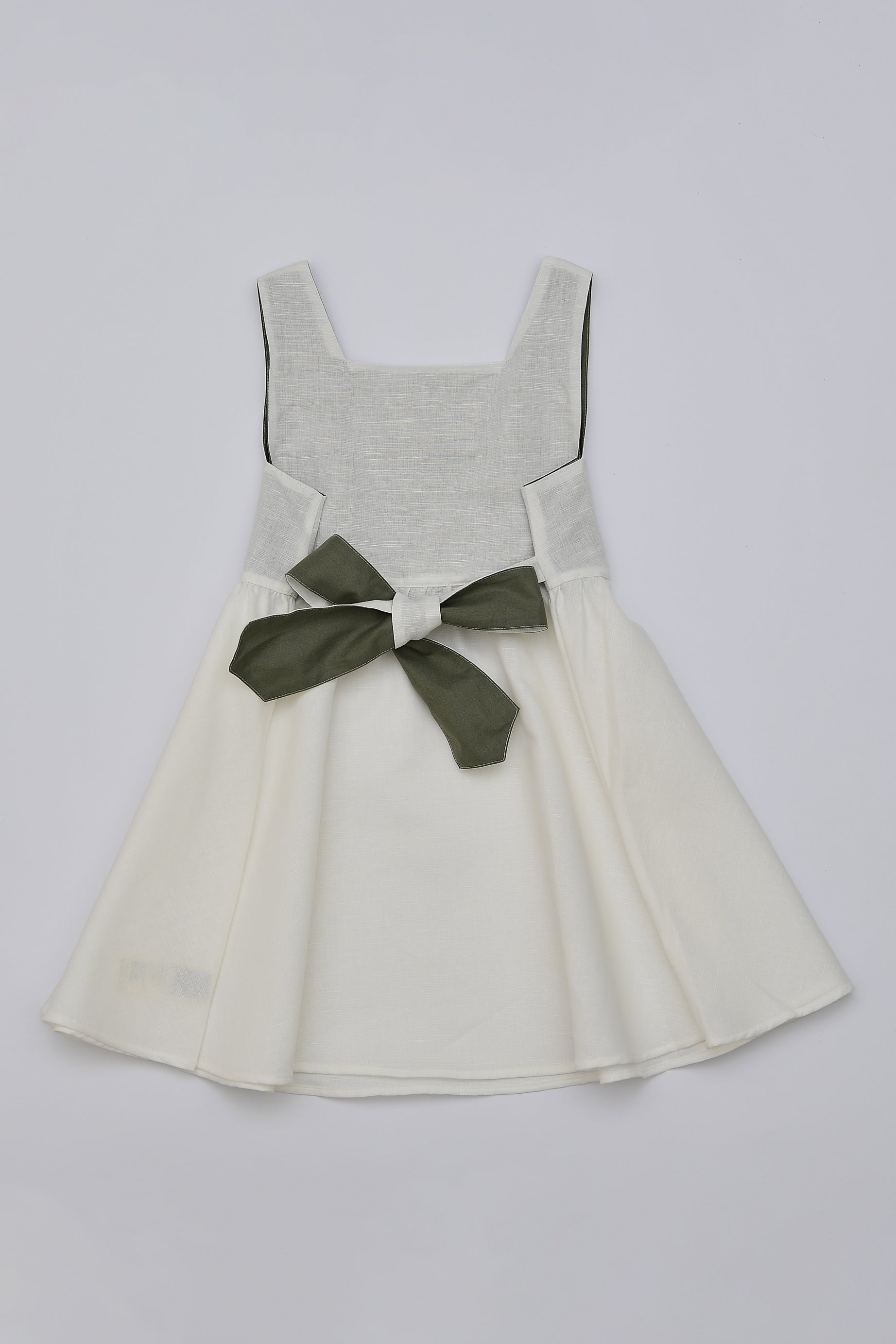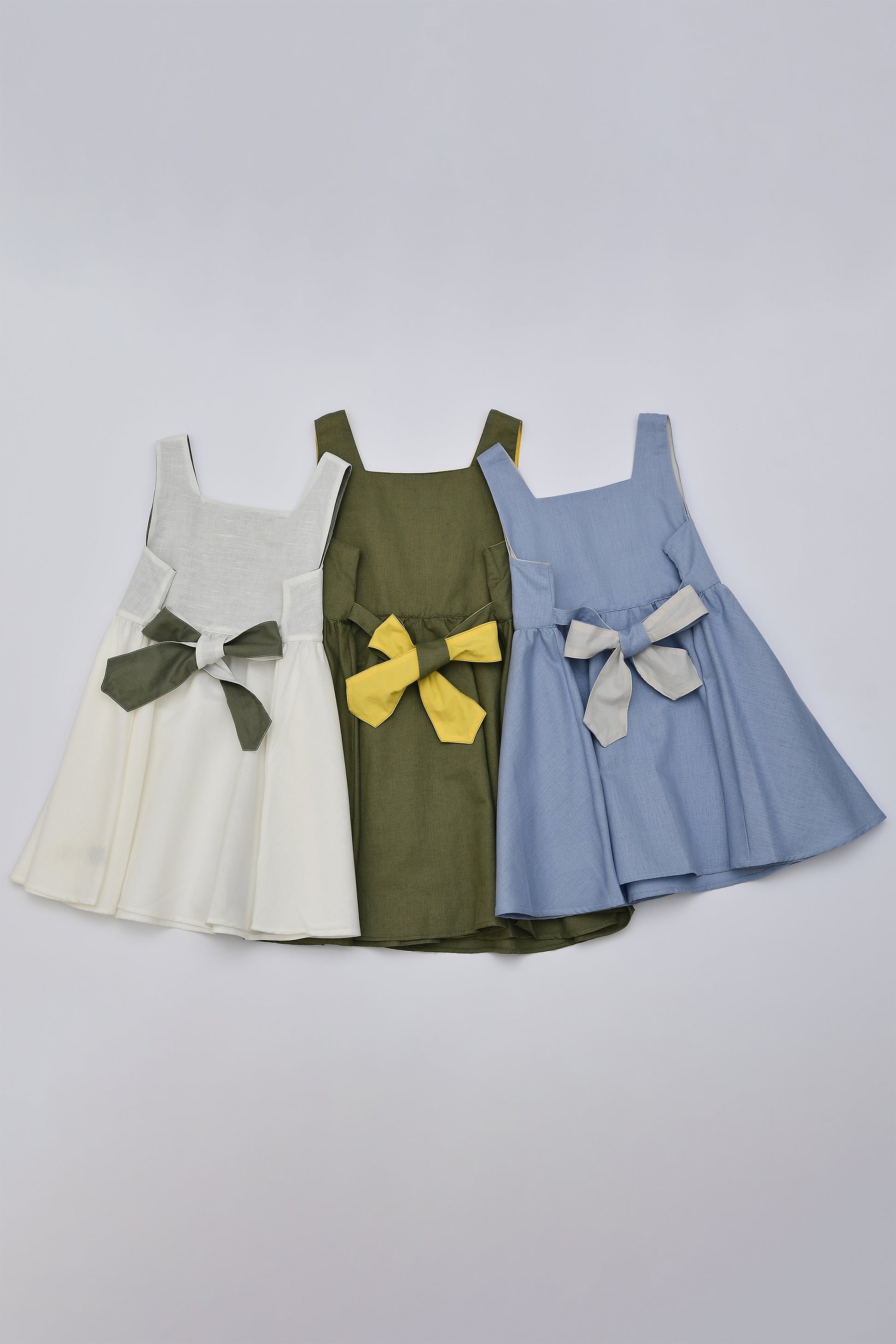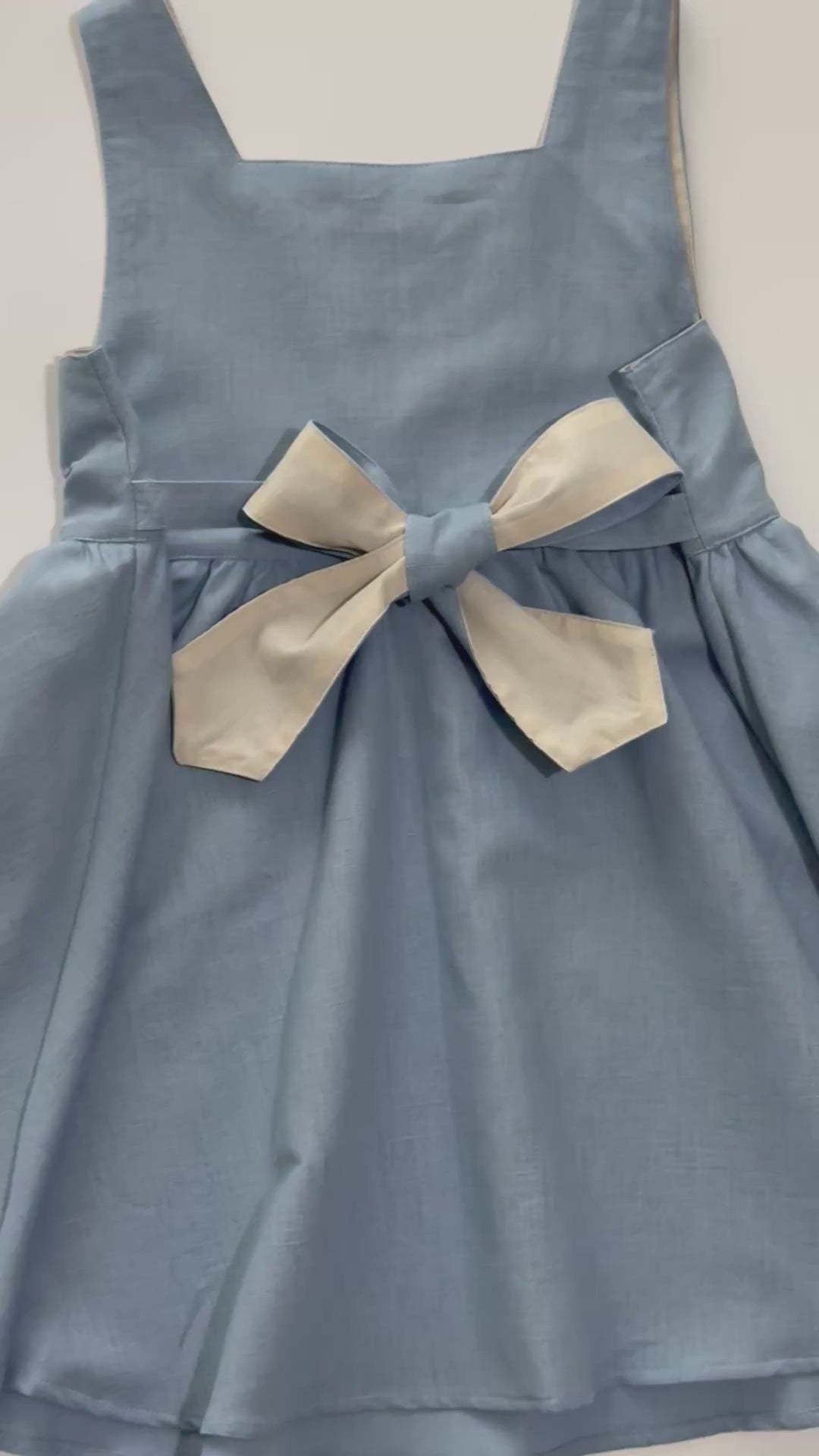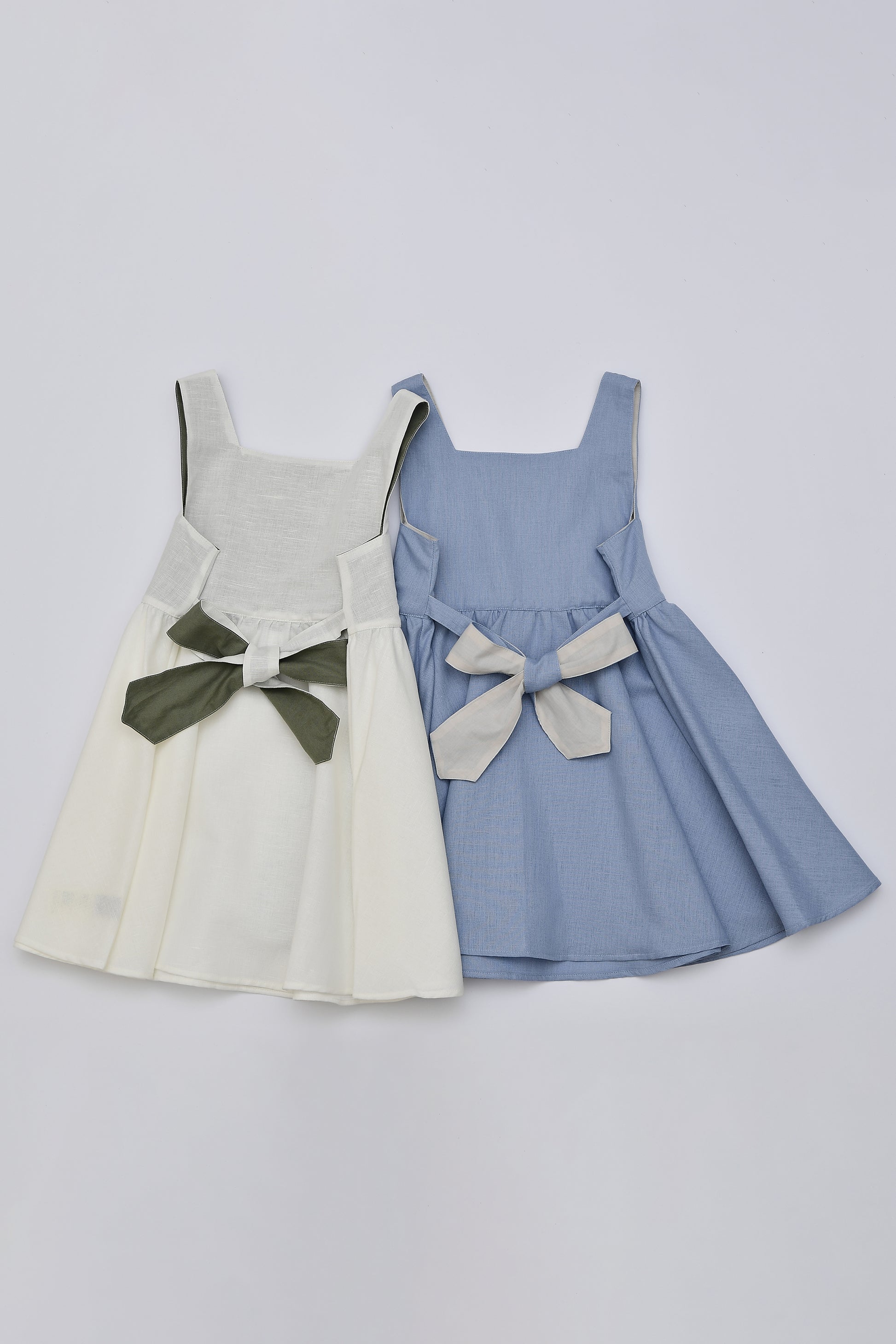 Questo vestito in lino e cotone vanta uno stile audace, ispirato al vintage. La fodera a contrasto aggiunge un tocco di colore, insieme al fiocco retrò bicolore allacciato sul retro! Preparati a far girare la testa con questo abito unico e particolare!