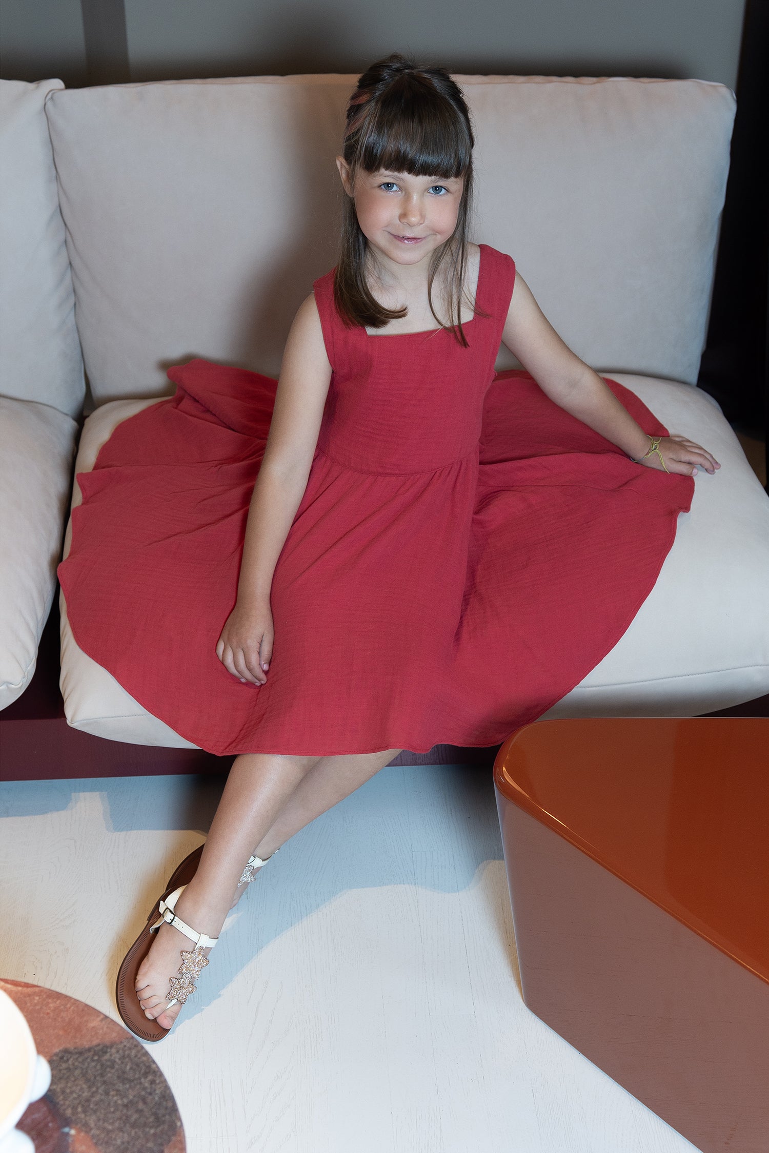 Scatena il tuo stile audace con l'abito Charlotte smanicato in mussola. Realizzato in 100% cotone biologico, questo abito trasuda sicurezza con i suoi giromanica quadrati, il design monocromatico e il fiocco in tono. Esalta il tuo guardaroba e prendi posizione con questa scelta di moda sostenibile!