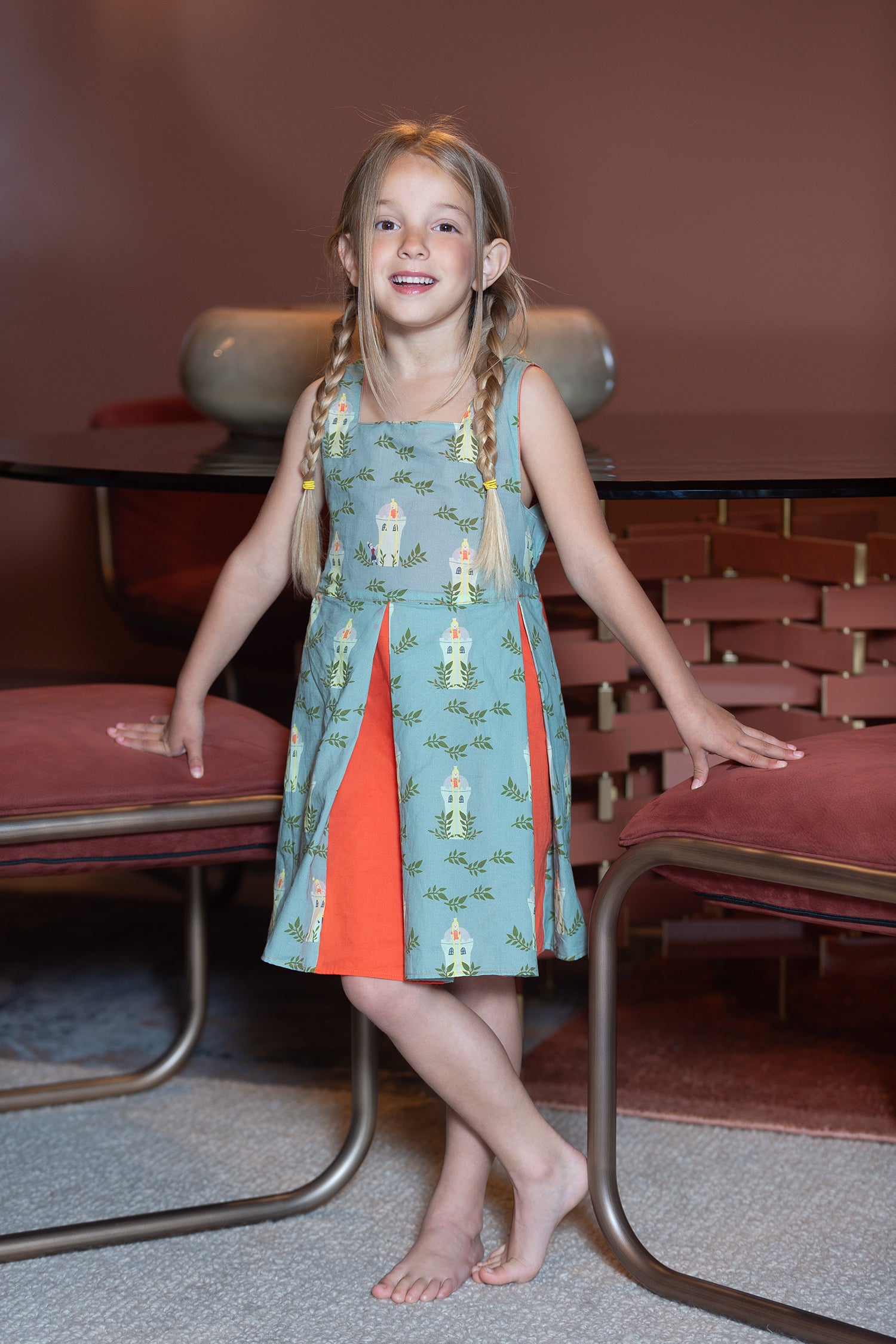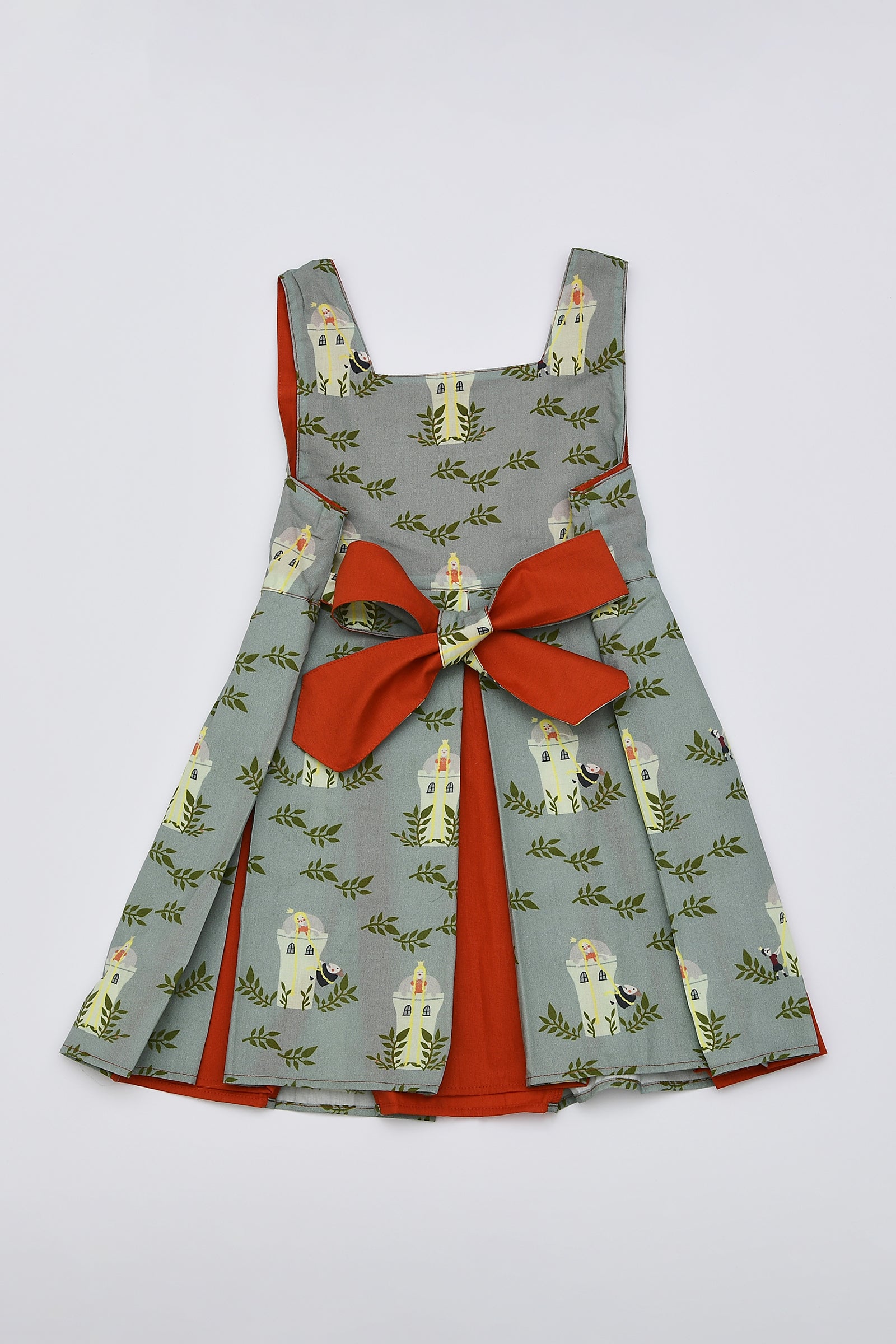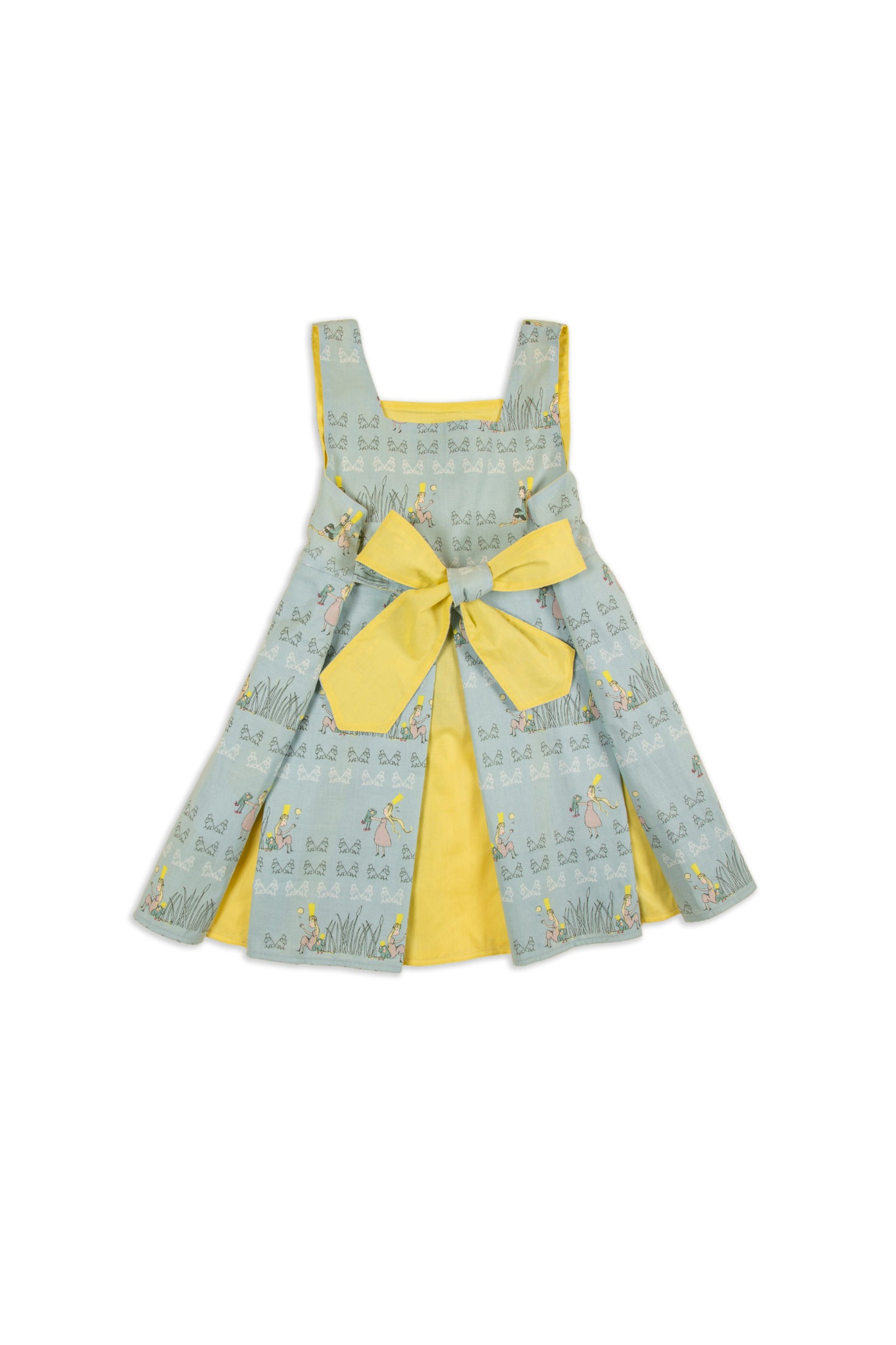 Offri alla tua bimba la possibilità di dichiararsi ecosostenibile con questo vestito elegante ed ecologico. Il taglio squadrato Farway e il fiocco bicolore audace aggiungono un tocco unico ai design classici. Scegli tra tre fantasie giocose: Cenerentola su rosa cipria, Rapunzel su azzurro e arancione o Principe Ranocchio su verde e giallo.