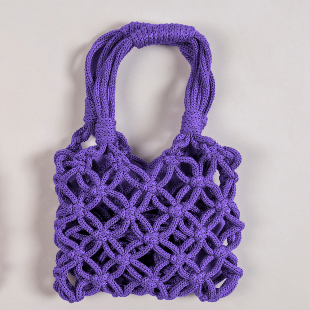 Borsa intrecciata a mano con filati di 100% cotone.