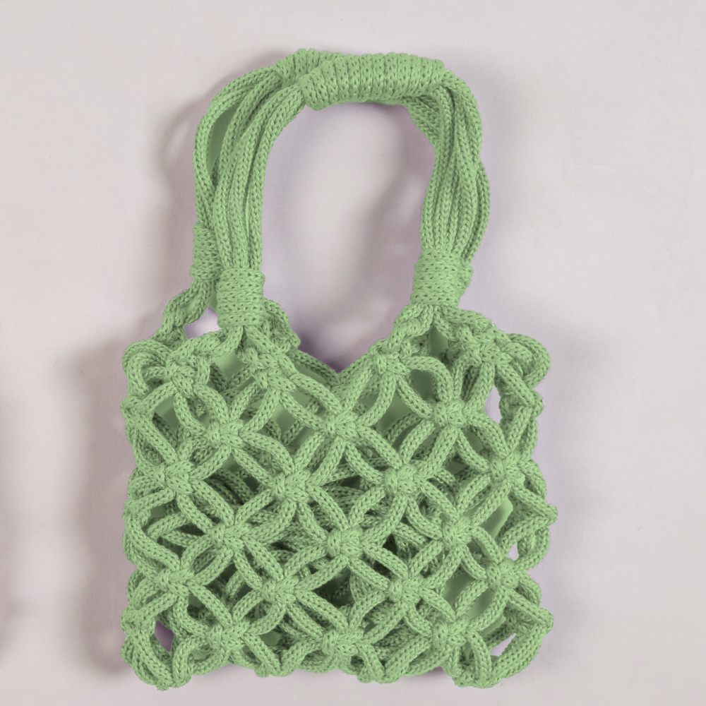 Borsa intrecciata a mano con filati di 100% cotone.