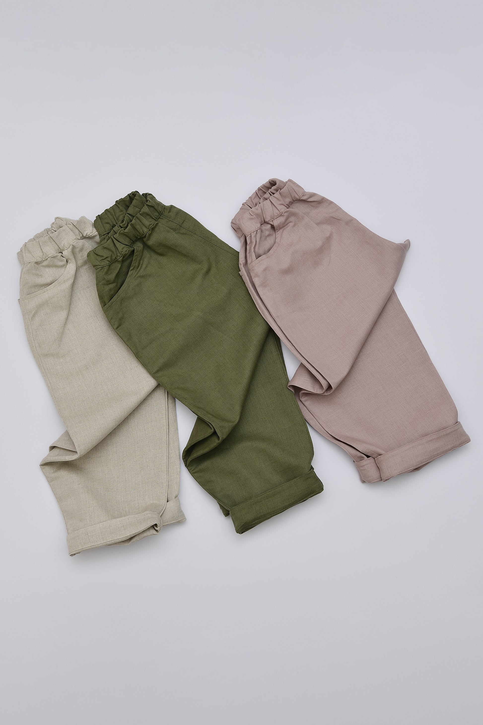 Elastico in vita, tasche davanti, orlo con risvolto.