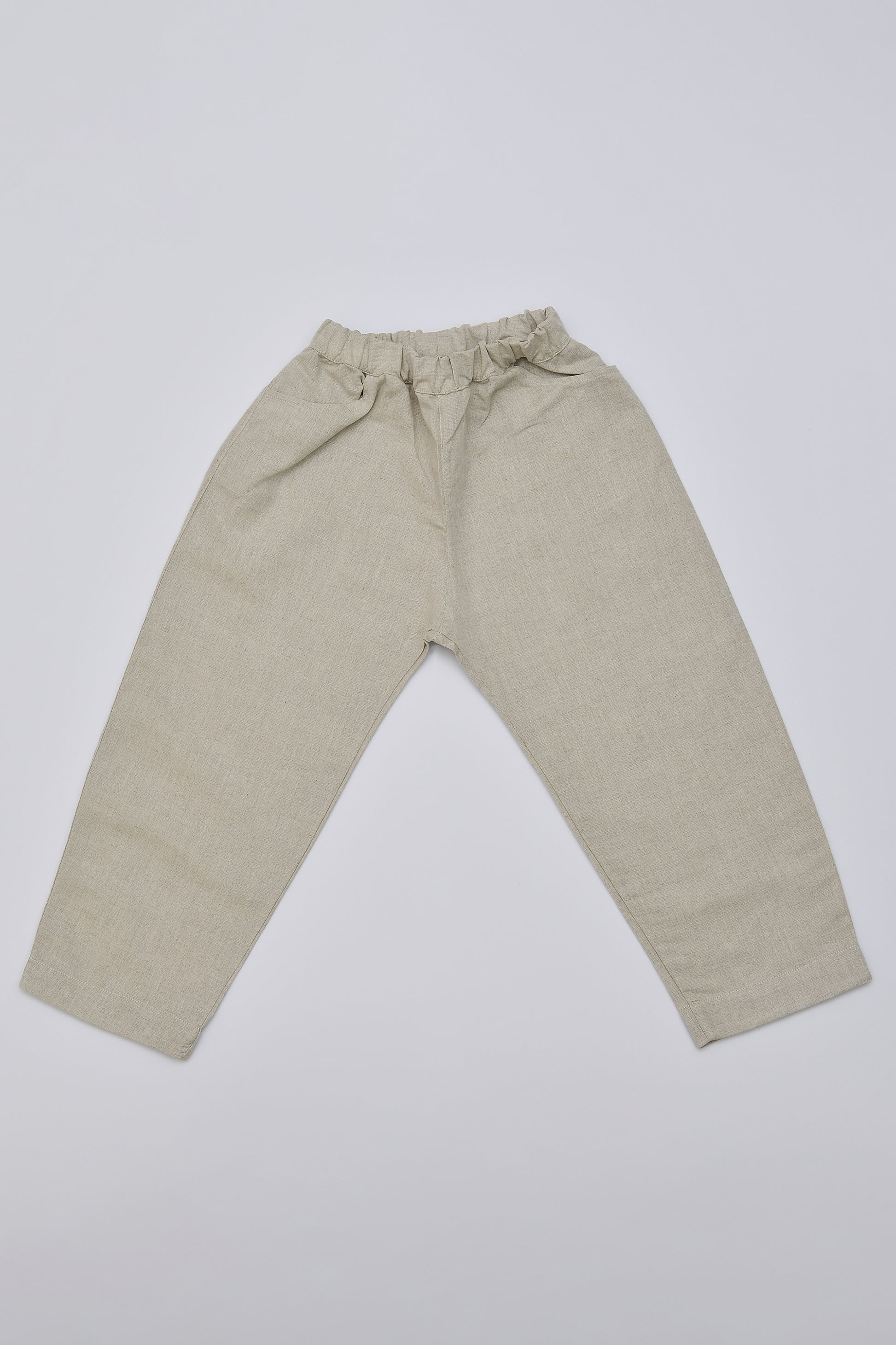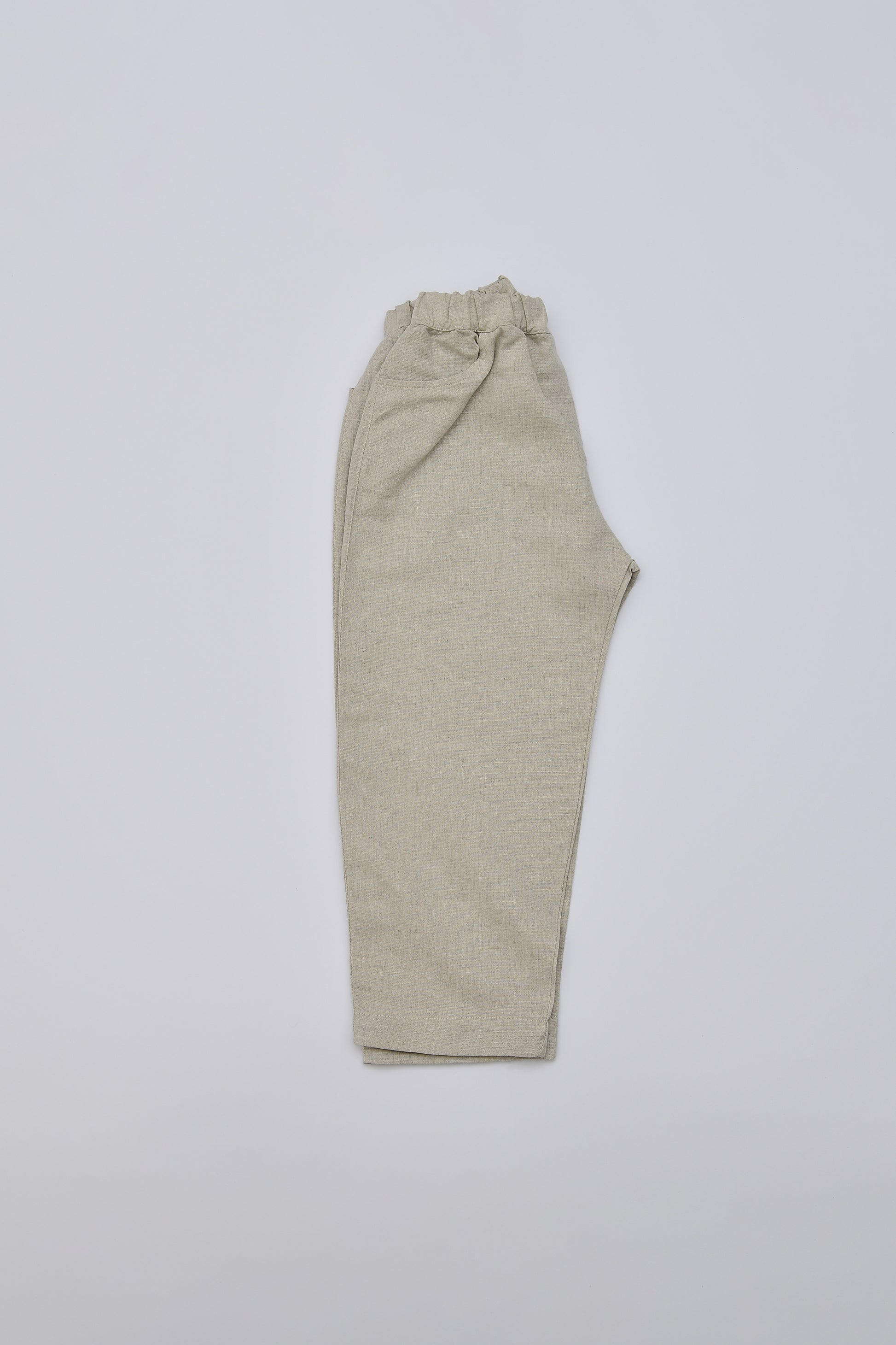 Pantalone lungo in tessuto misto lino e cotone.