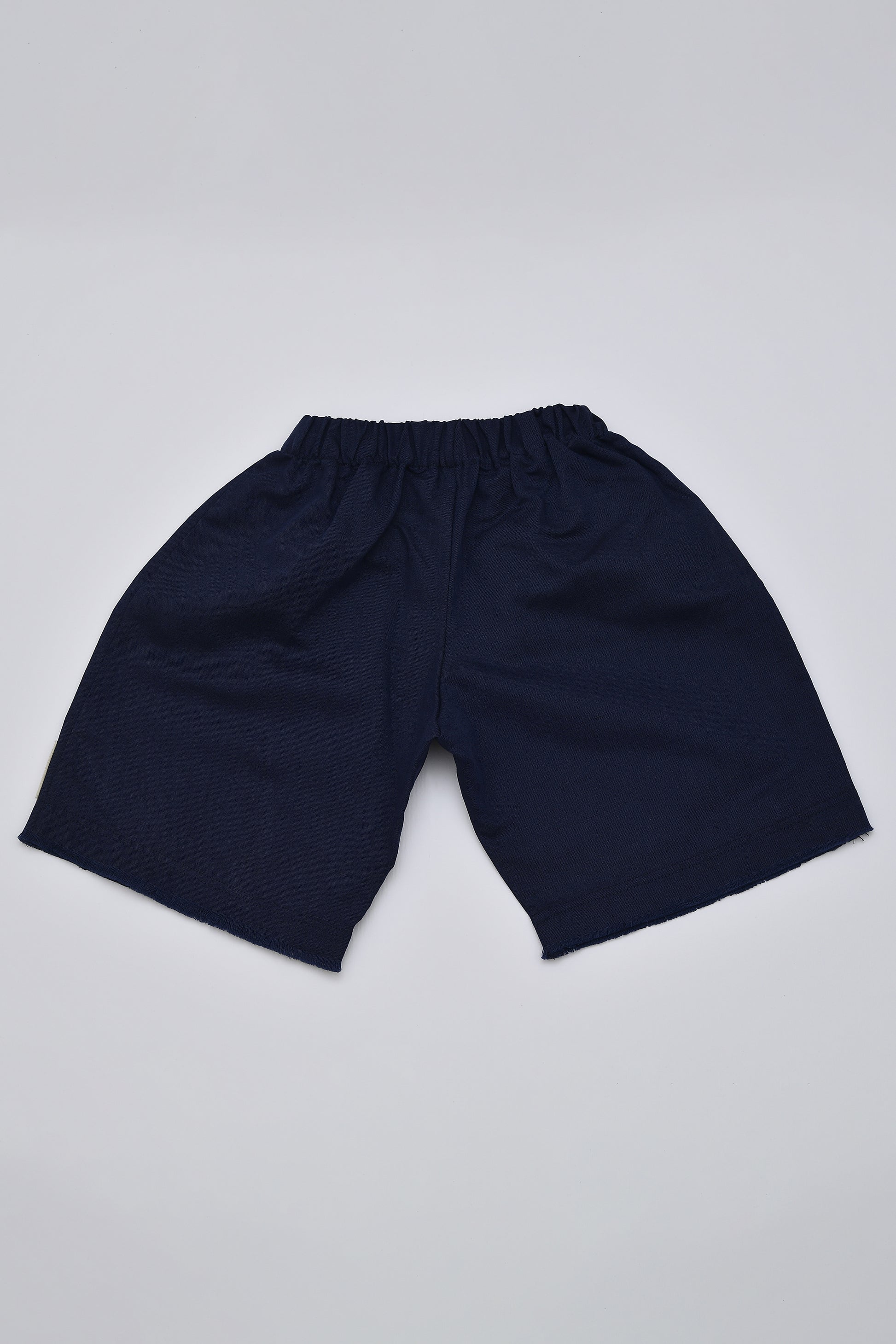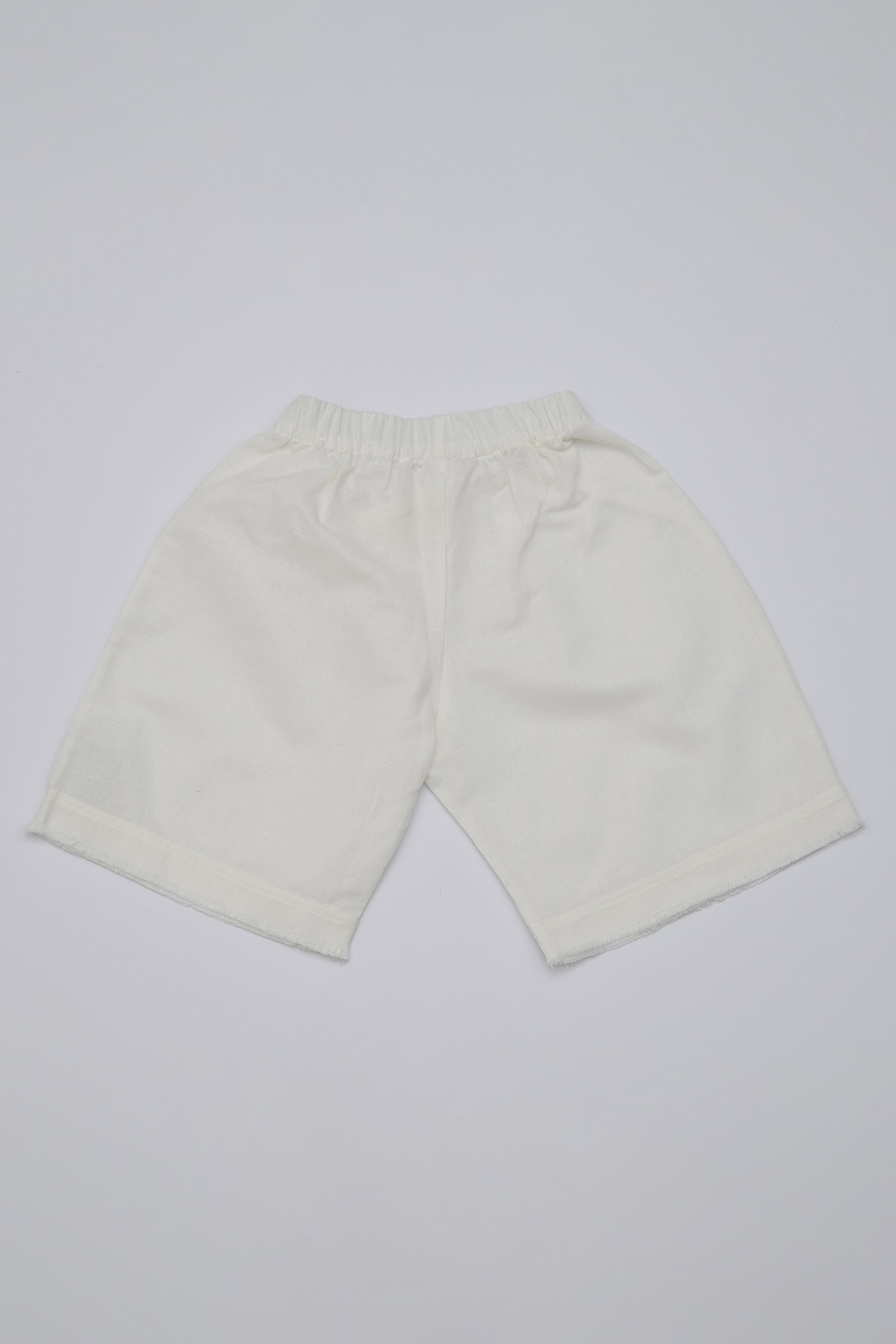 Pantalone corto in tessuto misto lino e cotone.