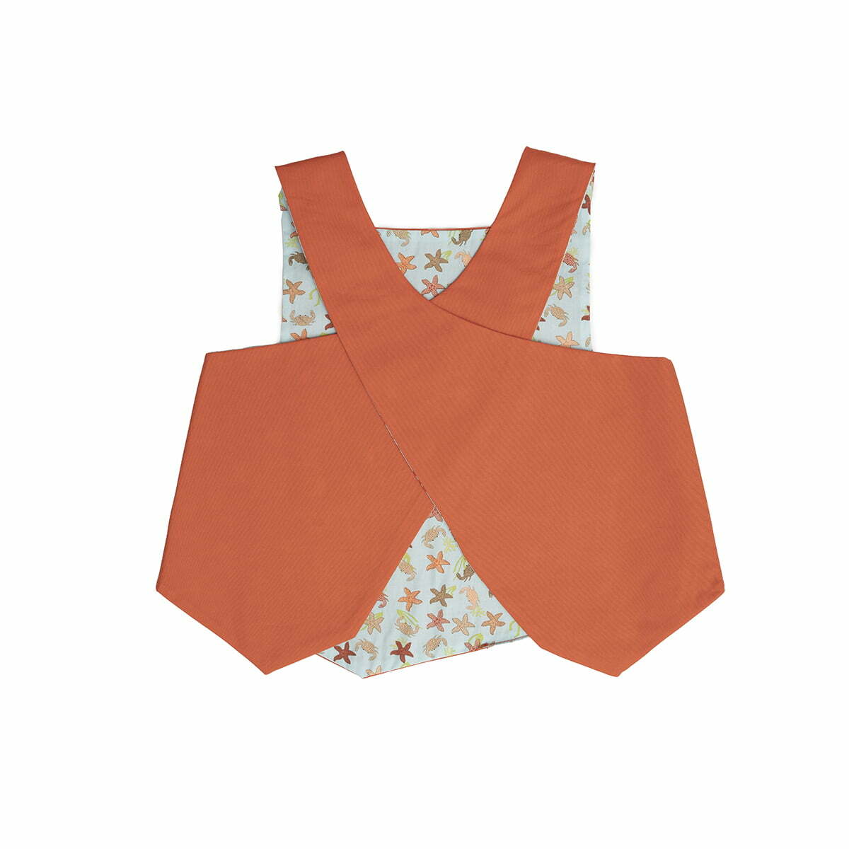 Chiusura sulle spalle con due bottoni naturali in cocco.